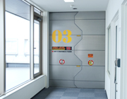 宇宙船のようなバンダイホビーセンター外観と内部のドア