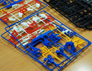 赤、青、白、黄色と4つの色がついているランナー(枠につながった部品)。初めから完成に近い状態で色分けされているから、彩色する手間がない